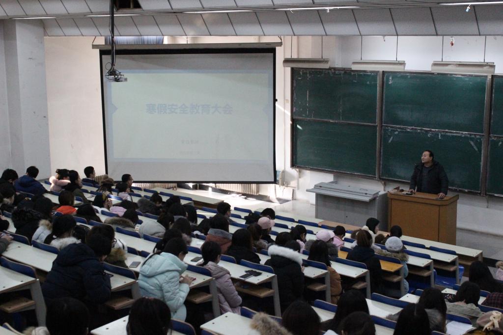 会上,刘永平首先宣读了学生工作处关于《关于加强期末学生安全与诚信教育工作的通知》和《辽宁工业大学党政办公室关于寒假放假安排的通知》,并就通知中的安全教育相关内容进行了着重强调。刘永平要求全体学生要寒假留校是做到“锁门、关窗、断电”,并在寒假返乡、返校途中及外出时注意人身和财产安全,模范遵守社会公共秩序和社会道德。同时,提高自身警惕,谨防电信诈骗及不良贷款现象的发生。